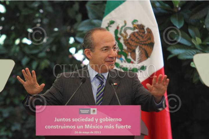 MÉXICO, D.F., 26MAYO2011.- El presidente Felipe Calderón durante el cierre del ciclo Iniciativa México 2010 que se realizo en al Residencia Oficial de Los Pinos. FOTO: RODOLFO ANGULO/CUARTOSCURO.COM