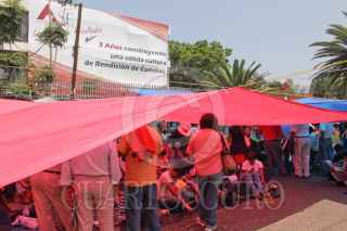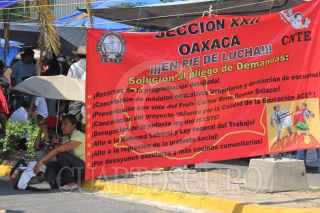 OAXACA, OAXACA, 26MAYO2011.- Este jueves se cumplieron 4 días del paro de labores y plantón masivo por parte de la Sección del Sindiato Nacional de los Trabajadores de la Educación (SNTE), quienes continuaron con los bloqueos a dependencias estatales y federales como medida de presión ante la no respuesta a su pliego petitorio. FOTO: JORGE A. PEREZ ALFONSO/CUARTOSCURO.COM
