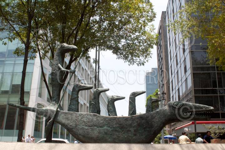 MÉXICO, D.F., 26MAYO2011.- Ayer al filo de la media noche la artista plática Leonora Carrington, murió a la edad de 94 años. Esta creadora era de nacionalidad inglesa y fue muy representativa en la corriente artística del surrealismo. En la ciudad podemos apreciar parte de su obra como en avenida Reforma en donde se encuentra la escultura Cocodrilo. FOTO: MOISÉS PABLO/CUARTOSCURO.COM