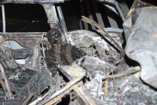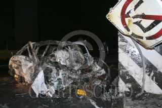 NAUCALPAN, ESTADO DE MÉXICO., 31MAYO2011.-Una persona murió calcinado al estrellar el vehículo en que viajaba en la base de un puente vehicular en el kilómetro 26 de la autopista Chamapa-Lechería. FOTO: LM ACEVEDO/CUARTOSCURO.COM