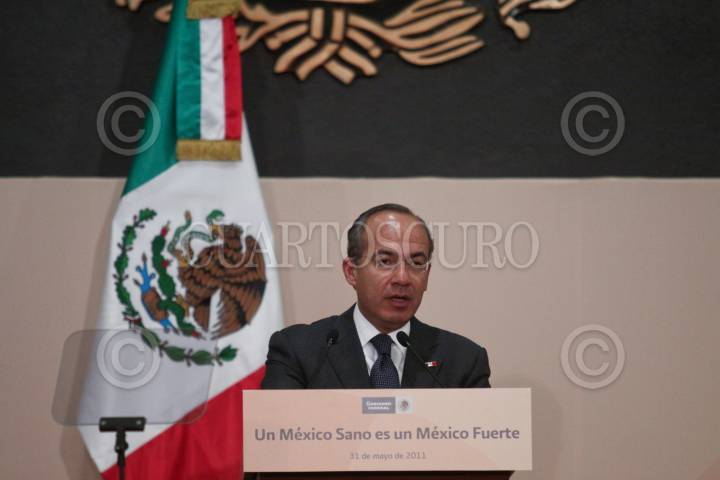 MÉXICO, D.F., 31MAYO2011.- El presidente Felipe Calderón al termino de la Ceremonia Conmemorativa del Día Mundial Sin Tabaco que se realizo en la Residencia Oficial de Los Pinos. FOTO: RODOLFO ANGULO/CUARTOSCURO.COM