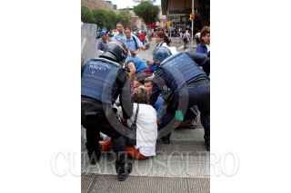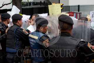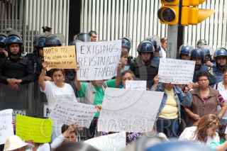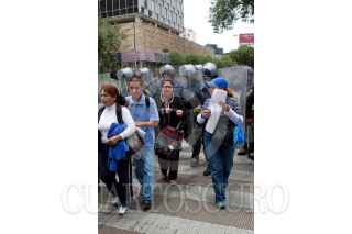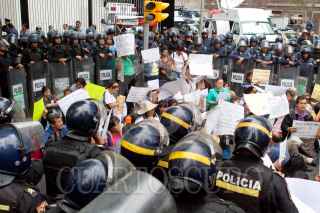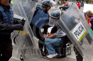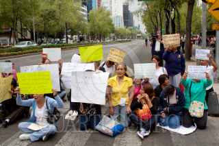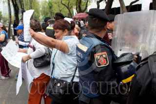 MÉXICO, D.F., 01JUNIO2011.- Trabajadores de limpieza que laboraban en la Cámara de Diputados se manifestaron afuera de la sede del Senado, ahí exigieron que los diputados Jorge Carlos Ramírez Marín y Josefina Vázque Mota, cumplan con su palabra de reinstalación a sus puestos de trabajo. Como estaban bloqueando los carriles centrales de avenida Reforma fueron desalojados por elementos de granaderos. FOTO: MOISÉS PABLO/CUARTOSCURO.COM