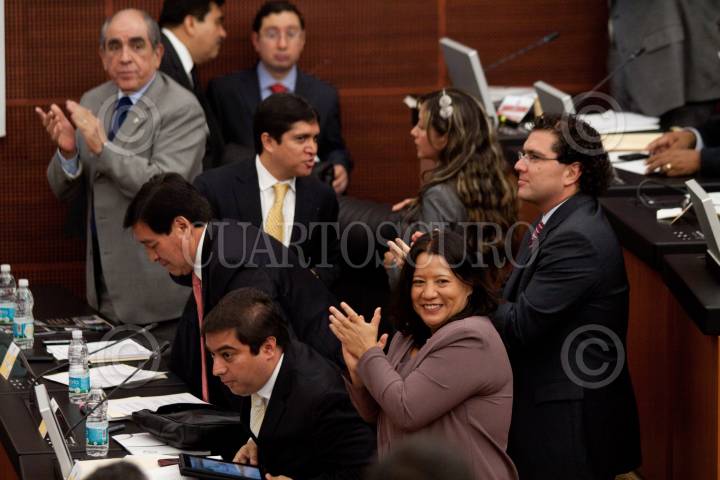 MÉXICO, D.F., 01JUNIO2011.- El coordinador de los diputados federales perredista Armando Ríos Piter, celebró la declaratoria de validez de las reformas constitucionales en materia de derechos humanos, en la sesión de la de Comisión Permanente en el Senado de la República. FOTO: MOISÉS PABLO/CUARTOSCURO.COM