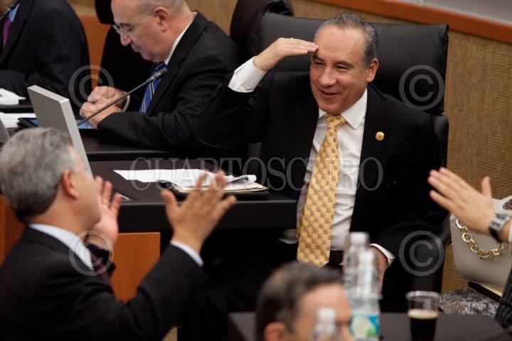 MÉXICO, D.F., 01JUNIO2011.- El coordinador de los diputados federales perredista Armando Ríos Piter, celebró la declaratoria de validez de las reformas constitucionales en materia de derechos humanos, en la sesión de la de Comisión Permanente en el Senado de la República. FOTO: MOISÉS PABLO/CUARTOSCURO.COM
