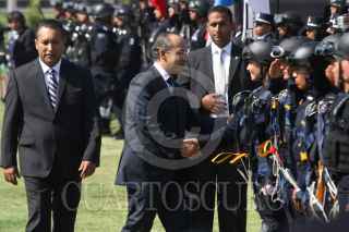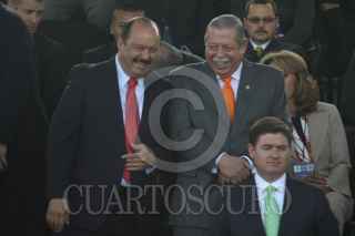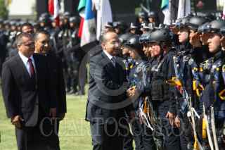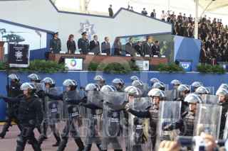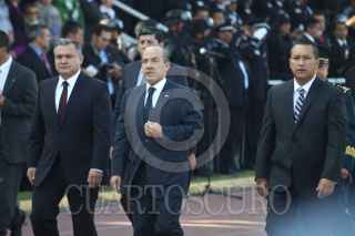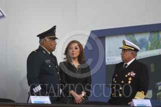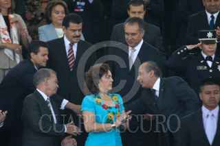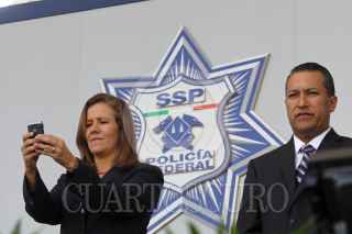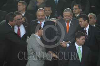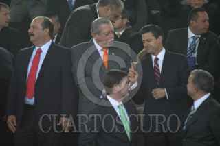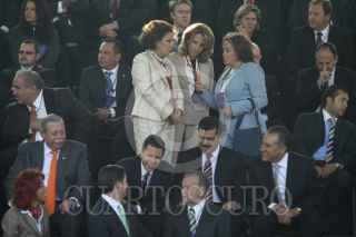 MÉXICO, D.F., 02JUNIO2011.- Isabel Miranda de Wallace, de la organización Alto al Secuestro; María Elena Morera de la organización Causa en Común y la maestra Elba Esther Gordillo, lider del SNTE conversan, mientras abajo los gobernadores Egidio Torre Cantú, gobernador de Tamaulipas; Enrique Peña Nieto, gobernador del Estado de México; Rodrigo Medina de la Cruz, gobernador de Nuevo León; José Francisco Olvera Ruiz, gobernador de Hidalgo; Andrés Granier Melo, gobernador de Tabasco y Marco Antonio Adame Castillo, gobernador de Morelos platican durante el evento de conmemoración del Día del Policía que se realizo en el Centro de Alto Mando de la Policía Federal. FOTO: RODOLFO ANGULO/CUARTOSCURO.COM