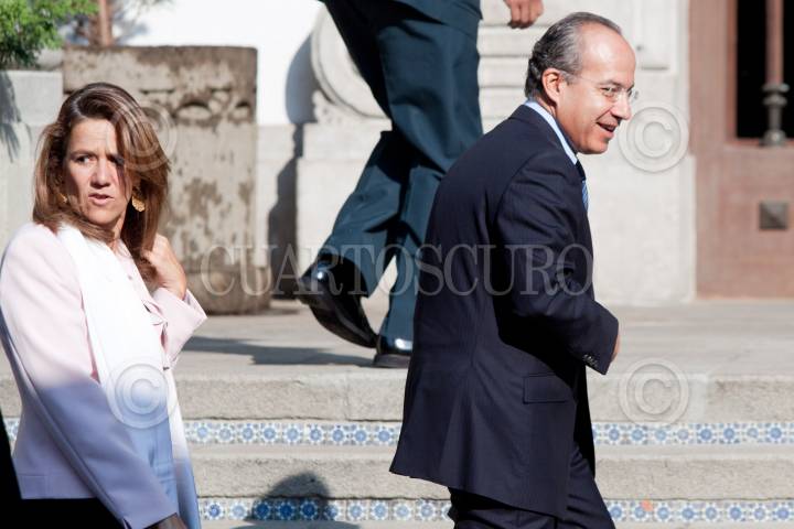 MÉXICO, D.F., 03JUNIO2011.- Felipe Calderón Hinojosa, Presidente de los Estados Unidos Mexicanos, y Manlio Fabio Beltrones, presidente de la mesa directiva del Senado de la República, encabezaron la ceremonia de promulgación de la Reforma Constitucional en materia de amparo, en las escalinatas de la residencia oficial de Los Pinos. FOTO: MOISÉS PABLO/CUARTOSCURO.COM