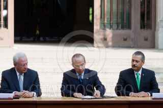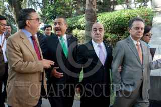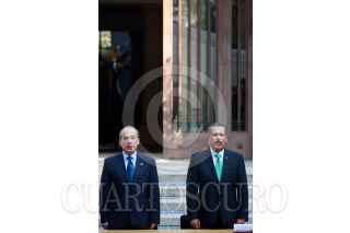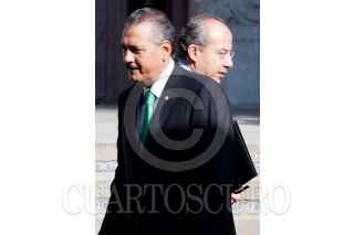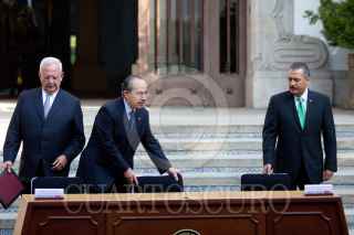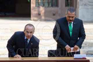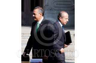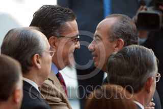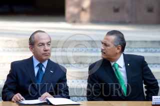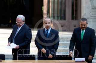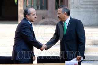 MÉXICO, D.F., 03JUNIO2011.- Felipe Calderón Hinojosa, Presidente de los Estados Unidos Mexicanos, y Manlio Fabio Beltrones, presidente de la mesa directiva del Senado de la República, encabezaron la ceremonia de promulgación de la Reforma Constitucional en materia de amparo, en las escalinatas de la residencia oficial de Los Pinos. FOTO: MOISÉS PABLO/CUARTOSCURO.COM