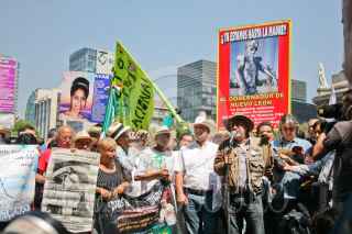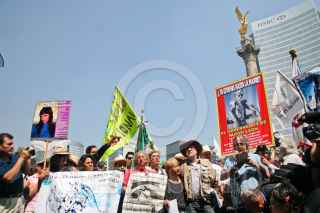 MÉXICO, D.F., 04JUNIO2011.- El poeta Javier Sicilia encabezó un mitin en el Ángel de la Independencia con el que inicio la Caravana Ciudadana por la Paz con Justicia y Dignidad. FOTO: ISAAC ESQUIVEL/CUARTOSCURO.COM
