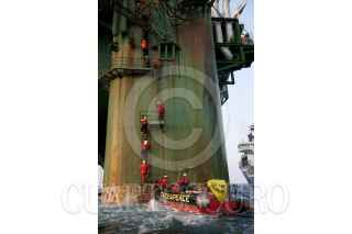 GROELANDIA, 04JUNIO2011.- Esta mañana una delegación de 18 activistas subió al plataforma Leiv Eiriksson que se ubica a 180 kilómetros de la costa de Groenlandia, para exigir a los responsables de su operación que mostraran el plan de contingencia ante vertidos. FOTO: GREENPEACE/CUARTOSCURO.COM
