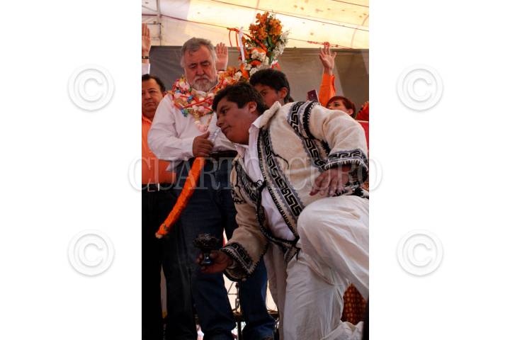SAN JOSÉ DEL RINCÓN, ESTADO DE MÉXICO, 04JUNIO2011.- Alejandro Encinas Rodriguez, candidato a la gubernatura del Estado de México por la coalición "Unidos Podemos Más" (PRD, PT, Convergencia) realizó un evento masivo en el municipio de San José del Rincón, donde lo recibieron con un ritual mazahua y le otorgaron el bastón de mando, entre otros obsequios. FOTO: ADRIANA ALVAREZ/CUARTOSCURO.COM