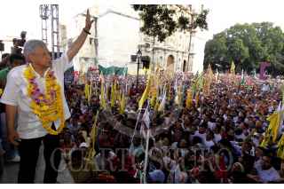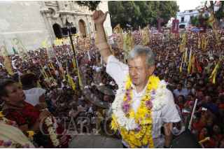 OAXACA, OAXACA, 04JUNIO2011.- Ándres Manuel López Obrador, líder del Movimiento de Renovación Nacional, encabezó un mitín informativo en el zócalo de esta ciudad como parte de su gira nacional. FOTO: CARLOS SALINAS/CUARTOSCURO.COM