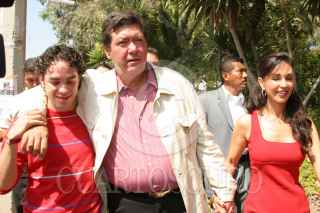 MÉXICO, D.F., 04JUNIO2011.- Maria Elvia Amaya, esposa de Jorge Hank Rhon, emitió un comunciado en el que denuncio la irrupción violenta por parte de elementos del ejército en el cateo en el que se detuvó a su esposo, además señalo que todas las armas cuentan con el permiso correspondiente y que los elemtos castrenses no contaban con la orden correspondiente para realizar la diligencia judicial. En imagen de archivo correspondiente al 5 de Agosto de 2007 es acompañada de su marido y su hijo. FOTO: ARCHIVO/VICTORIA VALTIERRA/CUARTOSCURO.COM