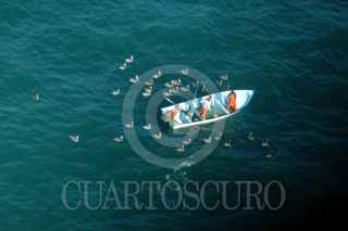 Mazatlan Sinaloa 02 de Septiembre del 2004.- En un sobrevuelo por las costas de Sinaloa a la altura de Topolobampo se observaron pescadores de rivera en altamar capturando camarón aunque para ellos esta prohibido. FOTO:Eduardo Resendiz/El Debate de Mazatlan