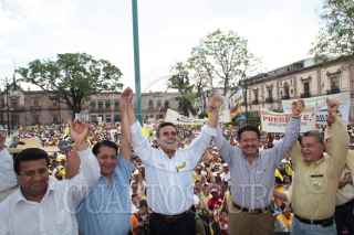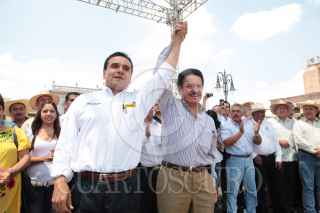 MORELIA, MICHOACÁN, 05JUNIO2011.- Silvano Aureoles Conejo inició su campaña por la gubernatura del estado acompañado del senador Carlos Navarrete Ruiz. FOTO: CUARTOSCURO.COM