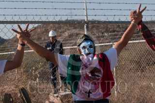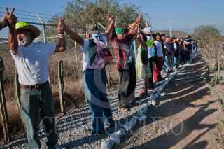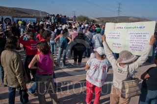 CERRO DE SAN PEDRO, SAN LUIS POTOSÍ, 06JUNIO2011.- La Caravana por la Paz con Justicia y Dignidad realizó una escala en este municipio en su recorrido hacia Zacatecas; en este lugar se manifestó en contra del daño ecológico causado por la Minera San Xavier. FOTO: ISAAC ESQUIVEL/CUARTOSCURO.COM