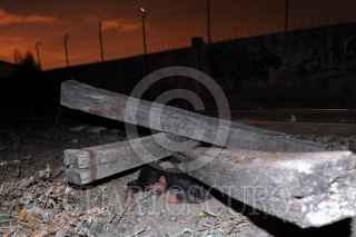 TLALNEPANTLA, ESTADO DE MÉXICO, 05JUNIO2011.- Un hombre de apróximadamente 40 años fue hallado sin vida en la calle Ferrocarril y avenida Lerma en la colonia Tlaxcolpan. El cuerpo presentaba signos de tortura y se encontraba bajo los bloques de madera mejor conocidos como "durmientes" en las vías del tren. FOTO: L.M. ACEVEDO/CUARTOSCURO.COM