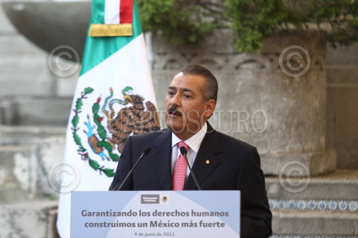 MÉXICO, D.F., 09JUNIO2011.- Raul Plascencia Villanueva, presidente de la Comisión Nacional de Derechos Humanos; Manlio Fabio Beltrones Rivera, presidente de la mesa directiva del Senado de la República y Juan Silva Meza, presidente de la Suprema Corte de Justicia de la Nación durante el evento de la Promulgación de la Reforma Constitucional en Materia de Derechos Humanos que se realizo en la escalinata de la residencia oficial de Los Pinos. FOTO: RODOLFO ANGULO/CUARTOSCURO.COM