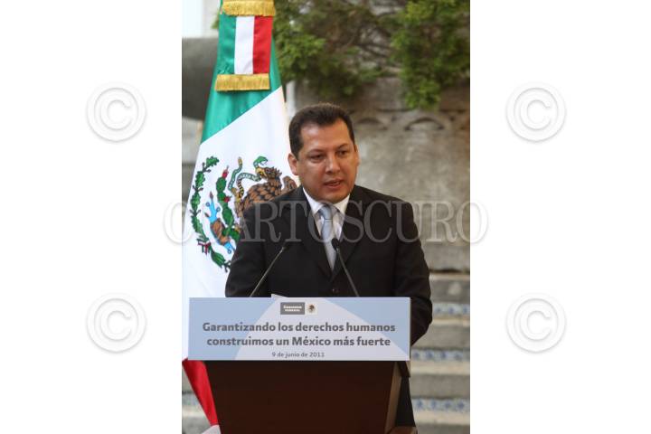 MÉXICO, D.F., 09JUNIO2011.- Raul Plascencia Villanueva, presidente de la Comisión Nacional de Derechos Humanos; Manlio Fabio Beltrones Rivera, presidente de la mesa directiva del Senado de la República y Juan Silva Meza, presidente de la Suprema Corte de Justicia de la Nación durante el evento de la Promulgación de la Reforma Constitucional en Materia de Derechos Humanos que se realizo en la escalinata de la residencia oficial de Los Pinos. FOTO: RODOLFO ANGULO/CUARTOSCURO.COM