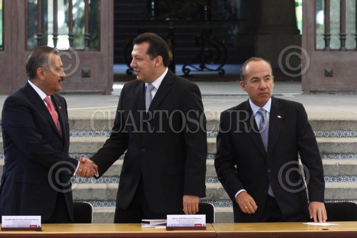MÉXICO, D.F., 09JUNIO2011.- Raul Plascencia Villanueva, presidente de la Comisión Nacional de Derechos Humanos; Manlio Fabio Beltrones Rivera, presidente de la mesa directiva del Senado de la República y Juan Silva Meza, presidente de la Suprema Corte de Justicia de la Nación durante el evento de la Promulgación de la Reforma Constitucional en Materia de Derechos Humanos que se realizo en la escalinata de la residencia oficial de Los Pinos. FOTO: RODOLFO ANGULO/CUARTOSCURO.COM