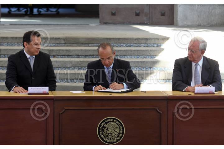 MÉXICO, D.F., 09JUNIO2011.- Raul Plascencia Villanueva, presidente de la Comisión Nacional de Derechos Humanos; Manlio Fabio Beltrones Rivera, presidente de la mesa directiva del Senado de la República y Juan Silva Meza, presidente de la Suprema Corte de Justicia de la Nación durante el evento de la Promulgación de la Reforma Constitucional en Materia de Derechos Humanos que se realizo en la escalinata de la residencia oficial de Los Pinos. FOTO: RODOLFO ANGULO/CUARTOSCURO.COM