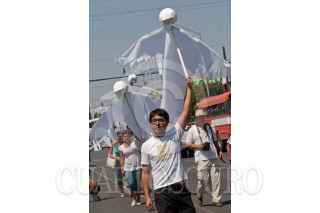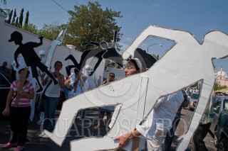 CHIHUAHUA, CHIHUAHUA, 09JUNIO2011.- El poeta Javier Sicilia marchó en la Caravana del Consuelo del Monumento a la Madre al Palacio del Gobierno del Estado. En ese lugar, Sicilia colocó una placa para recordar a Marisela Escobedo, quien fuera asesinada ahí mismo, el pasado 16 de diciembre. FOTO: ISAAC ESQUIVEL/CUARTOSCURO.COM
