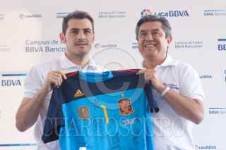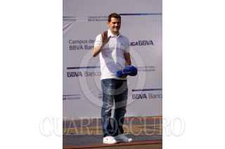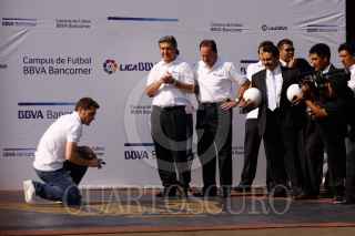 MÉXICO, D.F., 09JUNIO2011.- El futbolista Iker Casillas inauguró la clínica del campus de Futbol BBVA Bancomer en el estadio de Ciudad Universitaria. Juan Pablo Calderón Hinojosa se tomó una fotografía de grupo en la clínica de futbol. FOTO: IVAN STEPHENS/CUARTOSCURO.COM