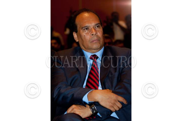 MÉXICO, D.F., 09JUNIO2011.- El gobernador de Guerrero Ángel Guerrero Rivero le canto "Acuedate de Acapulco" a la secretaria de Turismo Gloria Guevara Manzo, en alusión a el reciente cambio de sede de el Tianguis Turístico el cual era albergado en el puerto de Acapulco, esto tras finalizar el anunció por una inversión de 240 millones de pesos en proyectos turísticos en la entidad. FOTO: MOISÉS PABLO/CUARTOSCURO.COM