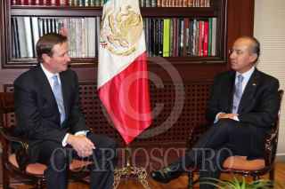 MEXICO, D.F., 09JUNIO2011.- Felipe Calderón Hinojosa, presidente de México se reunió en la residencia Oficial de los Pinos con el presidente de la empresa minera canadiensa Goldcorp, Charles Jeannes. FOTO: ALFREDO GUERRERO/CUARTOSCURO.COM
