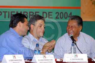 Tampico, Tamaulipas, 13SEPTIEMBRE2004.- Eugenio Hernández Flores, candidato a la gobernatura de Tamaulipas, David Penchyna, coordinador de comunicación del CEN del PRI y Melquíades Morales, gobernador de Puebla, durante la reunión consejeros políticos del PRI. FOTO: Juan Flores/CUARTOSCURO.COM