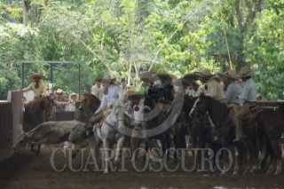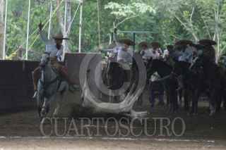 CUNDUACÁN, TABASCO, 11JUNIO2011.- En el lienzo charro Reyna entre Ases se efectúa el campeonato nacional sureste Walther Herrera, donde "Los de a caballo" compiten con distintas suertes y sumar puntos para la siguiente contienda. FOTO: MARCO POLO GUZMÁN HERNÁNDEZ/CUARTOSCURO.COM
