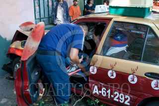 MÉXICO, D.F., 15JUNIO2011.- Un taxi se impacto contra el muro de una casa sobre la avenida Juan Escutia en la colonia condesa sin dejar heridos de gravedad. FOTO: ENRIQUE ORDÓÑEZ/CUARTOSCURO.COM