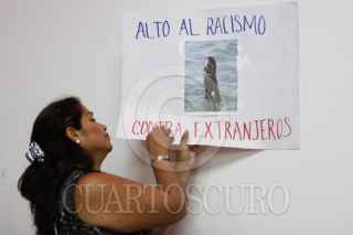 MÉXICO, D.F., 15JUNIO2011.-Wilner Metelus, representante del Comité Ciudadano de Defensa de los Naturalizados y Afromexicanos, y Liduvina Castillo Zavala, viuda de Isaac Echinedu Nwachukwu, pidieron a las autoridades que se escalresca el caso. FOTO: IVÁN STEPHENS/CUARTOSCURO.COM