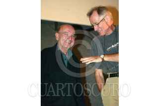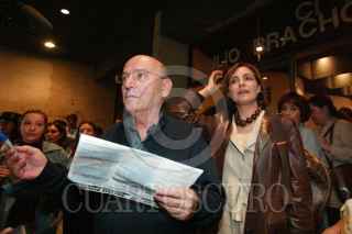 MEXICO, D.F.14SEPTIEMBRE2004.- El director griego Theo Angeloupolus junto a Diana Bracho, firma autográfos durante la presentación de su película "Viaje a Citeria", en la Sala Julio Revueltas del Centro Cultural Universitario de la UNAM. Foto: Rita Canto/CUARTOSCURO.COM