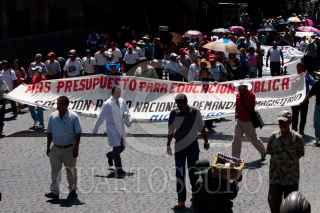 MÉXICO, D.F., 16JUNIO2011.- Los maestros del Sindicato Nacional de Trabajadores de la Educación de la sección XVIII de Michoacán, marcharon del Zócalo a la Secretaría de Gobernación, causando estragos vehiculares en el Eje Central y Reforma. FOTO: MOISÉS PABLO/CUARTOSCURO.COM
