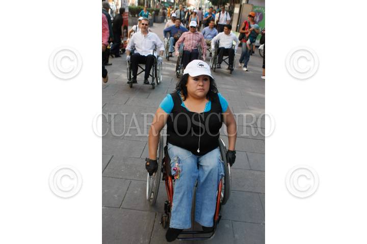 MÉXICO, D.F., 16MAYO2011.- Personas con discapacidad motriz y sin ella recorrieron las calles del Centro Histórico para concientizar al transeúnte y fomentar el respeto de las rampas y accesos de discapacitados. FOTO: IVÁN MENDEZ/CUARTOSCURO.COM