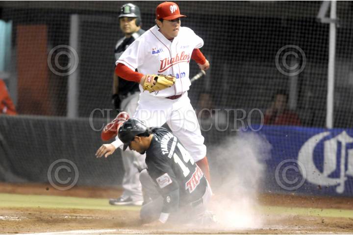 MÉXICO, D.F., 16JUNIO2011.- Willis Otañez, integrante de los Broncos de Reynosa, celebró su home run con sus compañeros, en el juego que sostuvó su escuadra contra los Diablos Rojos del México. FOTO: AGENCIA 2.8/ENRIQUE GUITÉRREZ/CUARTOSCURO.COM