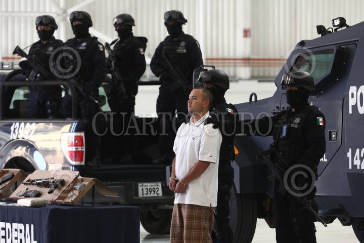MÉXICO, D.F.,17JUNIO2011.- Elementos de la Policia Federal, presentaron ante los medios de comunicación a Edgar Huerta Montiel alias el Wache” presunto jefe de la plaza de San Fernando en Tamaulipas quien se le vincula con el multihomicio de migrantes.. Huerta Montiel fue detenido el día de ayer en Fresnillo Zacatecas FOTO: SAÚL LÓPEZ/CUARTOSCURO.COM
