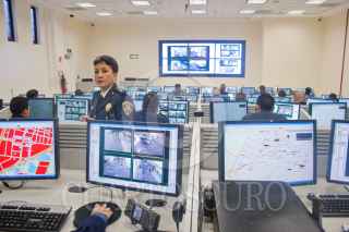 MÉXICO, D.F., 18JUNIO2011.- Policías vigilan la ciudad a través de cámaras en el Centro de Comando y Control C2 en el Centro. FOTO: ISAAC ESQUIVEL/CUARTOSCURO.COM