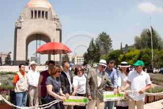 MÉXICO, D.F., 18JUNIO2011.- En la explanada del Monumento a la Revolución se inauguró el “Mandala Quinto Sol”, elaborado con 2,000 m2 de hidro-maceteros de material reciclado. FOTO: MOISÉS PABLO/CUARTOSCURO.COM