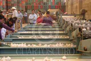 ZACATECAS, ZACATECAS, 19JUNIO2011.- En el campo zacatecano se tienen 2 mil hectáreas destinadas a la siembra de ajo, 40 por ciento de ellas corresponde a la Integradora AjoZac, quienes venden sus productos principalmente en la Ciudad de México y exportan a la Unión Europea y Australia. En la imagen, trabajadores de la planta procesadora y frigoríficos, en donde almacenan hasta 2 mil toneladas. FOTO: ESPECIAL/CUARTOSCURO.COM