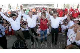 SAN PEDRO DE LAS COLONIAS, COAHUILA, 19JUNIO2011.- El coordinador del grupo parlamentario del PRI y presidente de la cámara de senadores, Manlio Fabio Beltrones asistió al acto de apoyo del candidato al gobierno del Estado Ruben Moreira Valdez. FOTO: ESPECIAL/CUARTOSCURO.COM