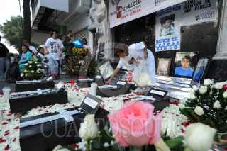 MÉXICO, D.F., 19JUNIO2011.- Familiares y amigos de los fallecidos en la discoteca News Divine, acudieron hasta lo que fueron las instalaciones del centro de diversión para colocar ofrendas y realizar homenaje luctuoso a 3 años de los hechos donde fallecieron varios doce jóvenes durante un operativo realizado por elementos de la Secretaria de Seguridad Publica del Distrito Federal. FOTO: LUIS CARBAYO/CUARTOSCURO.COM