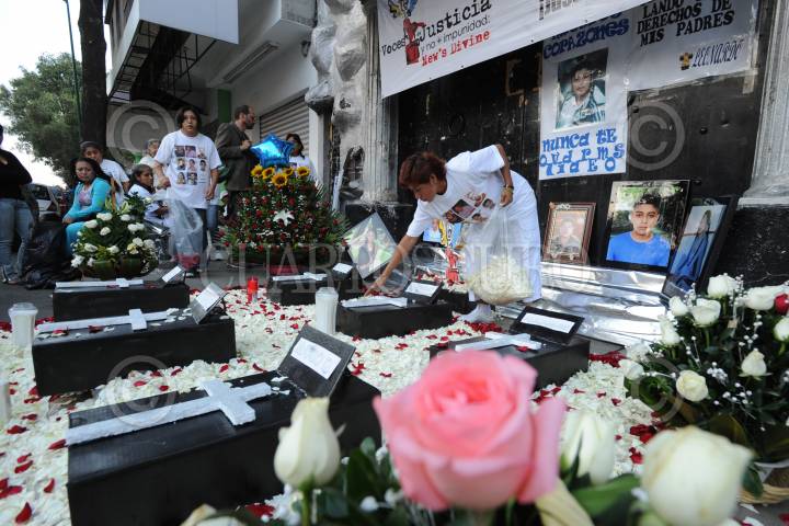 MÉXICO, D.F., 19JUNIO2011.- Familiares y amigos de los fallecidos en la discoteca News Divine, acudieron hasta lo que fueron las instalaciones del centro de diversión para colocar ofrendas y realizar homenaje luctuoso a 3 años de los hechos donde fallecieron varios doce jóvenes durante un operativo realizado por elementos de la Secretaria de Seguridad Publica del Distrito Federal. FOTO: LUIS CARBAYO/CUARTOSCURO.COM