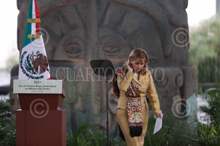 MÉXICO, D.F. 21JUNIO2011.- Felipe Calderón Hinojosa, presidente de México, durante el lanzamiento del programa Mundo Maya 2012 ralizado en el Museo Nacional del Antropología e Historia. FOTO: IVAN STEPHENS/CUARTOSCURO.COM