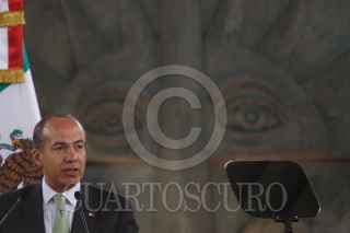 MÉXICO, D.F. 21JUNIO2011.- Felipe Calderón Hinojosa, presidente de México, durante el lanzamiento del programa Mundo Maya 2012 ralizado en el Museo Nacional del Antropología e Historia. FOTO: IVAN STEPHENS/CUARTOSCURO.COM