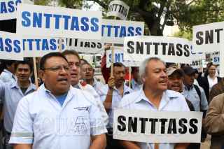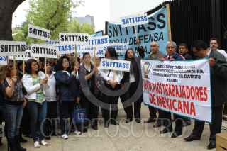MÉXICO, D.F. 21JUNIO2011.- Personal de tierra de Mexicana de Aviación del Sindicato Nacional de Trabajadores de Transformación, Transporte y Aviación (SNTTTASS) protestaron a las afueras del Senado de la República para que se reanuden las actividades lo antes posible. FOTO: RODOLFO ANGULO/CUARTOSCURO.COM