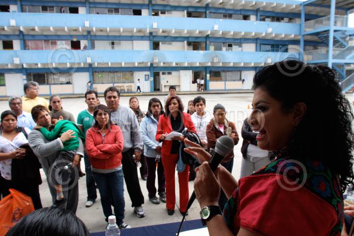 MÈXICO, D.F., 21JUNIO2011.- Clara Brugada, jefa delegación en Iztapalapa, hizo una visita en la escuela primaria federal 24 de febrero,en la colonia Santa Martha Acatitla, donde realizo una revisión en las instalaciones de esta, a solicitud de los padres de familia ya que carece de pintura ,pizarrones,y un techado ya que cuando los niños hacen deporte se exponen a las altas temperaturas. FOTO: ADRIANA ALVAREZ/CUARTOSCURO.COM