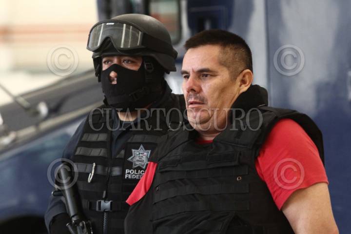 MÉXICO, D.F., 22JUNIO2011.- Elementos de la Policía Federal, presentaron ante los medios de comunicación a José de Jesús Méndez, alias de El “Chango Méndez”, presunto líder de la organización criminal denominada “La Familia Michoacana” quien fue detenido el día de ayer en un reten en el estado de Aguascalientes. FOTO: SAÚL LÓPEZ/CUARTOSCURO.COM