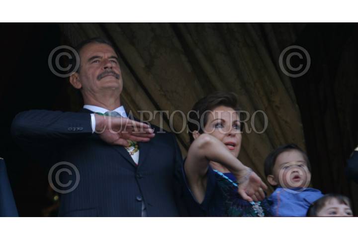 MEXICO, DF 16SEPTIEMBRE2004.- El senador Diego Fernández de Cevallos y el jefe de la ciudad de México Andrés Manuel López Obrador observan el desfile militar que conmemora e inicio de la guerra de independencia. FOTO: Nelly Salas/CUARTOSCURO.COM