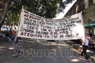 OAXACA, OAXACA, 22JUNIO2011.- Integrantes de Antorcha Campesina en el estado, marcharon a través de las principales calles de la ciudad de Oaxaca, para exigir al gobierno del Estado dar solución a su pliego petitorio, mismo que fue entregado a principios de año. FOTO: ARTURO PÉREZ ALFONSO/CUARTOSCURO.COM